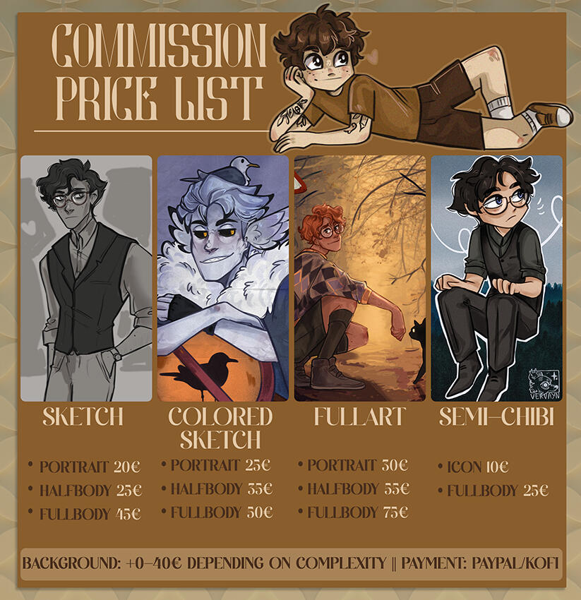 1 • To request a commision, please contact me via email or twitter or instagram. I will do my best reply to your messages within 24 hours - if you haven't receive any response, please message me again2 • I can refuse your commission if I don't feel comfortable doing it3 • Clients are not allowed to edit finished artwork - small edits for personal use (emotes, filters etc.) are okay4 • I reserve the right to drop and refund your commission (100% refund) if I provide reason of why im dropping it5 • I usually need between 2 weeks to 2 months for completing the commission - this depends on the size and my current amount of work. Please feel free to ask for an update anytime!6 • If you have a deadline (for example, someone's birthday!) please let me know - I will see if I can make it, but please keep in mind it might not be possible if there isn't enough time7 • Commissioned art is for personal use only - please credit me when using it by listing my twitter tag or linking my page8 • No commercial use allowed. You may not profit from the art, sell prints or products, etc. You can make prints for personal use.9• I prefer to work with references (give me as many as you have), but I can also desing a character based on the description/moodboard - just please keep in mind it might have an additional cost.10. Commissioned art cannot be used for NFTs, AI "art" or used on the blockchain / blockchain technology.